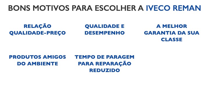 Com garantias de qualidade aplicadas em todos os processos e garantias iguais às dos componentes novos, os produtos IVECO Reman oferecem total tranquilidade aos nossos clientes.